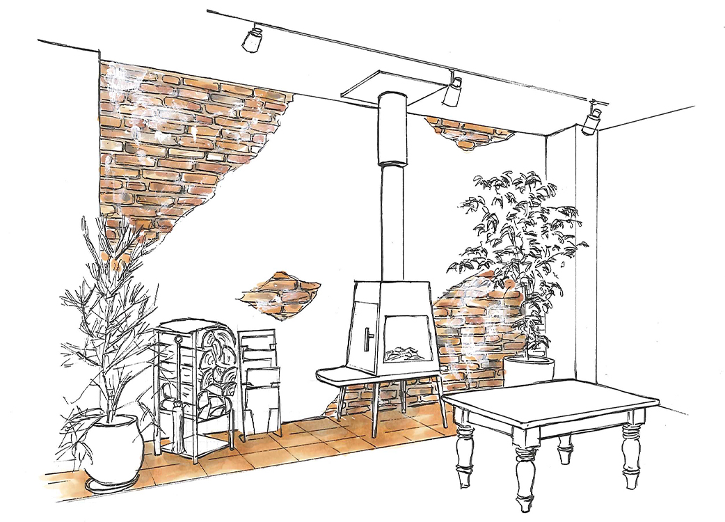 人が集まる場所だからタイルでアクセント